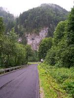 sziklafal-szakadék-patak kombó volt általában az út mentén. Az országúton a szakadó esőben feltekertünk a hágóra (kb. 50m szintkülönbség),