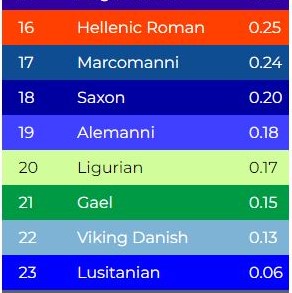 Pl: az ibériai-félsziget lakói nagyrészt indoeurópai kelta férfi haplocsoportúak, amíg a mitokondiriális DNS-ük inkább a korábban ott élőkre hajaz(összességében pedig 40%-ban cserélték le a bevándorlók a helyi népességet, ami az autoszomális génösszetételből derül ki).