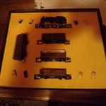Eladó a képen látható készlet sínek nélkül.Szép állapotban, fékimitáció hiba lehet a vagonokon.Ár 11200 Ft ami tartalmazza az utánvételes postaköltséget. Fz1-es trafó viseltes dobozban ár 6000 Ft.