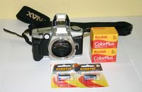 Minolta Dynax 5 analóg váz (Ezüst - a 28-80-nal és a 75-300-zal egy szett) M.A.K.U.L.Á.T.L.A.N. Eredeti Dynax nyakpánt, abszolút karc-, és pormentes. + 2 db. CR2 bontatlan, új elem (2014.05-ig szavatos) + 2 db. bontatlan Kodak ColorPlus / 200 film :) S/N: 32315009 Ár: 5.000.- Ft.