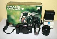EGY UNIKUM: MINOLTA 5000 ANNIVERSARY KIT - MINOLTA'S 60th BIRTHDAY EDITION Ez csak egyben eladó. Gyűjtői darab! Minolta AF 5000 váz + Minolta AF 35-70 f4 mini BEERCAN + Minolta Program Flash 1800AF (saját, külön dobozában, bőrtokban + diffúzor) + eredeti, hímzett, limitált 60th birthday MINOLTA állítható nyakpánt + eredeti, jó állapotú doboz. Az egész MINT AZ ÚJ, ez nem vicc. Gyönyörű, por-, és gombamentes. Sajnos az eredeti lencsetisztító szett hiányzik a dobozból :-/ ettől eltekintve kivételes darab, hogy így egyben és ilyen állapotban konzerválva fent maradt. Obihoz első-hátsó gyári kupak és gyári napellenző. Természetesen tökéletesen működik. Adok hozzá 8 db. új AAA elemet (4 a vakuban, 4 a gépben). S/N: 20201289 (váz) 22209111 (obi) 80293084 (vaku) Ár: 19.000.- Ft.