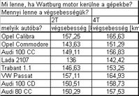 Csak mint érdekesség kiszámoltam, hogy ha egy gyári 2T Wartburg motort (50Le-s) beleszerelnének az XL1-es VW-be, akkor 197,5km/h lenne a végsebessége. Vagyis írtózatosan kicsi ennek az autónak a légellenállása. Jó munkát végeztek a VW mérnökei.