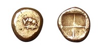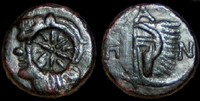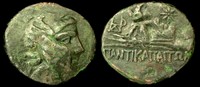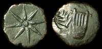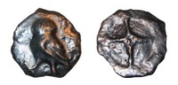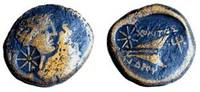 Ezekre a Pantikapaionban, a Krím-félszigeten talált érmékre sajátos módon verték rá a Nap-jelképet: a dingir jelzést az ember- vagy istenalaknak egyszerűen a profiljára sütötték. Kr. e. 304--250 tájáról.