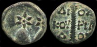 Mønt slået af Kong Asander. Vi ser inskriptionen ”ΑΡΧΟΝΤΟΣΑΣΑΝΔΡΟΥ” eller ”Archontos Asandrou” på reversen. Da Asander endnu ikke er godkendt som konge er møntet slået før hans ægteskab med Dronning Dynamis, dvs. år 47-45/44 f.Kr. Kilde: Alekseev V.P., Loboda P.G.: ”Some Unplublished Bosporus Coins of the Early Roman Period” (Issue No. 4, September 2000)