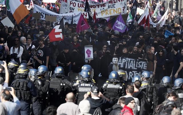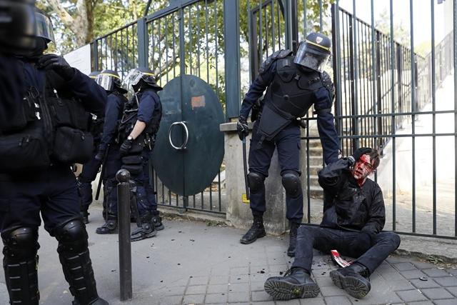 Durva tömegoszlatás történt Párizsban a szakszervezetek tüntetésén, a rohamrendőrök véresre verték a tüntető diákokat