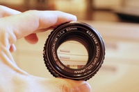 Minolta Rokkor QF 200mm f:3.5: Hihetetlenül hangzik, de ez az objektív gyakorlatilag új. A lencsék és a tubus is karcmentes. A képeken jól látható, hogy még a bajonett is érintetlen. A fókusz gyűrű nagyon finoman jár. Gyári bőrtokja is gyönyörű állapotban van: 30.000Ft