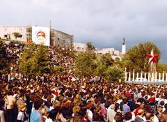 Budapest XI., a Citadella alatti déli lejtő, Jubileumi park, háttérben a Szabadság-szobor. A felvétel a III. magyar-szovjet ifjúsági barátságfesztiválon készült.