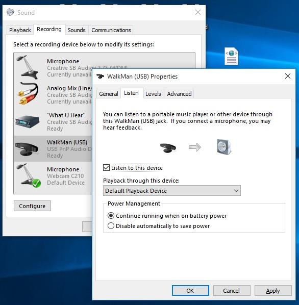 Windows 7/8/10 esetében nem kell ehhez külön program. Ha jobban belegondolsz, akkor az nem is lenne logikus, hogy minden csatlakoztatott USB eszköz magától egyből a default outputra küldje a hangját, elég nagy kakofónia lenne az eredmény több eszköz esetén. Az USB-s szintid egy felvételi forrás, amit aktiválni kell, hogy halljad a hangját egy kiválasztott output-on. Valahogy így néz ez ki Windows-on (az én esetemben egy USB-s Walkman most a példa eszköz):