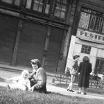286737 - Szentendrén a Dunapart felől a Görög utca felé, az utcában fagyiért állnak sorba, még feljebb a Teátrum díszlete takarja a teret