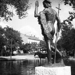 Tata, Keresztelő Szent János szobra (N. Kovács Mária, 1944.) a mai Kodály Zoltán téren, a Malom-patak mellett.