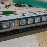 Elkészült a Tillig Rekokocsikhoz is a világítás. Végzár itt is van. A beltér egyben kapcsolható, vagy neoneffekttel, vagy egyszerre ki/be. Itt is az áramszedést kellett pluszban megoldani. Sikerült a réz lemezt úgy behelyezni, hogy utána kiszedhető, azaz nincs ragasztva.