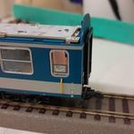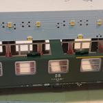 Az előzményben mutattam egy PIKO reko átalakítást, amit NEM ajánlottam senkinek. Módosítva a nyákot, így minimális munka kell a kocsihoz. Az áramszedést is egyszerűsítettem, a vékony lemez szinte semmit nem fog a keréken. A belső lámpa+átjáró imitációt ki kell pattintani, pirosra festeni, és ennyi.