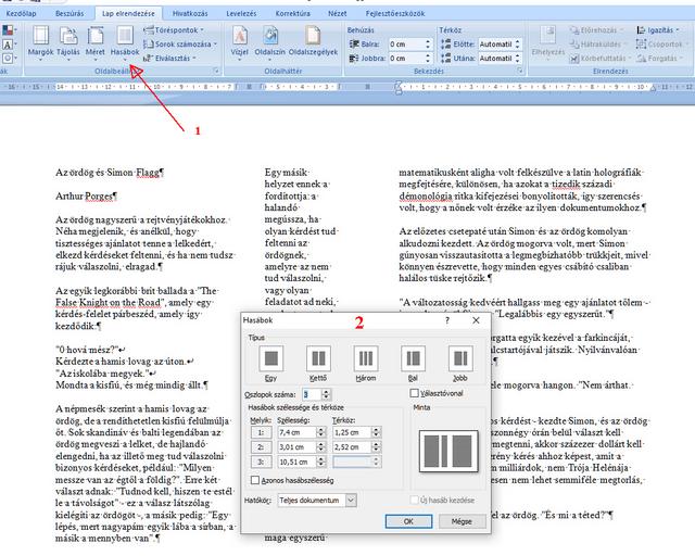 (Biztos, hogy ez kell neked? Összehajtós valamit akarsz? Akkor még ott a gond, hogy a 2-es hasáb a lap hátoldalára kell kerüljön.)