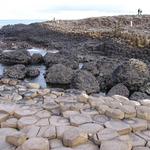 Óriások lépcsője: ott az a rend, hogy van fönt a magas parton egy nagy parkoló, az ingyenes (legalábbis pár éve az volt). Itt van egy "Giant's Causeway Visitor Centre" (jegyvásárlás, toalett stb). Leparkolunk, jegyet veszünk, és kisbusz megy le a partra, úgyhogy semmi autós nyomor nem zavarja az élményt. Nincs ugyan messze, de a parkoló fönt van, és egy lejtős út talán párszáz méter gyalog sincs túl messze de öregeknek, gyerekeknek mégis. Lent a célnál nem csak a bazalt lépcsőfokok érdekesek (óvatosság tanácsos, gyerekekre vigyázni) ez végül is nem nagyon nagy terület, de érdemes elsétálni kicsit messzebb keleti irányban (veszélytelen gyalogösvény) és távolabb további bazaltláva alakzatok és barlangok vannak.