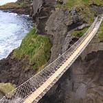 Carrick-a-Rede. Ez sincs messze, de keletre. A meredek parttól nem messze kis sziget, és oda egy kötélhíd vezet. Nem akkora nagy poén, de látványos és gyerekeknek is kalandos. A többi látványossághoz képest szerényebb beugró.