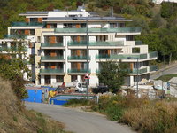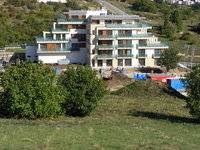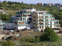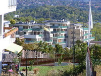 A kertet nagy erőkkel csinálják - sokan!, a zöldtetőket (amik a lakásokhoz tartoznak) is elkezdték feltölteni (kivűlről daruval:). (Elég jópofa módszerrel:).