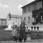 301296 - Szentendrén a mai Római sánc közben a Petzelt József Szakiskola felől, Szabados Béla szobrászművész, „Festőlány” című szobra (1960)