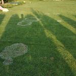 Rendkívül sok benne a muhar, gondolom gyomirtózni, vagy gyomirtós táppal megszórni ilyenkor még nem ajánlott. Kihúzgálni a nagy terület miatt nincs időm. Meg még mindig szebb így messziről lenyírva, mint a sok kopasz folttal a muhar helyén.