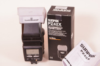 SUNPAK PZ42X vaku használtan vettem, minden funkciója működik, kopásnyomok vannak a logón és a kijelző mellett, jár hozzá egy Lumiquest Ultrabounce tépőzáras diffúzor