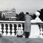 Budapest XII., Széchenyihegy, Széchenyi-emlék út, Széchenyi-kilátó, az egykor a mai Hősök terén állt gloriette (artézi kút). Kilátás a Svábhegyi Szanatórium felé.