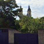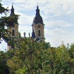 Magyarország, Kalocsa, a háttérben a Nagyboldogasszony Főszékesegyház. A fotóra inkább csak tippelek, (a templom részletei alapján) talán a Kígyó utca 1. felől készülhetett a kép....
