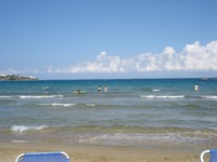 Hozzáteszem, hogy sztem pici gyerekhez eléggé hullámzott a viz. Ahogy elnéztem mindenhol, talán csak néhány helyen volt nyugodt, mert ott annyira sekély volt, hogy nem jött ki teljesen a hullám. Bár azt is meg kell hagyni, hogy mindenki el volt ájulva, hogy ilyen "szar" idő nem szokott lenni, délen méteres hullámok voltak állitólag. Mi is nagy bölcsen elmentünk Elafonisibe, hogy hátha ott jobb mint nálunk, ott egy német pár, aki Plakiasban volt, ők mondták, hogy hát ott még rosszabb a helyzet, pedig ők minden évben ott nyaralnak, de ilyen még nem volt. Szóval lehet hogy amúgy nem annyira hullámos, ezt nem tudom.