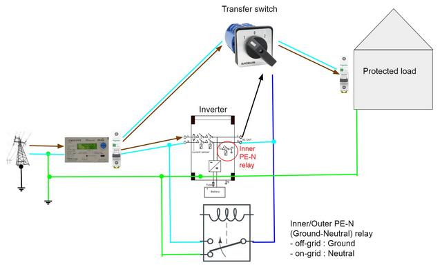 Az inverter a nullát(!) (N) kapcsolja össze ezzel a PE-vel amikor "ő termeli az áramot", hogy a kimenet ne "lebegjen", ne legyen "földfüggetlen"!