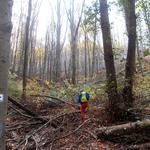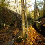 Gödöllő HÉV megálló, szombat reggel 6 óra: Szűk fél év után egyből kiszúrom az út szélén várakozó, élénk színekben pompázó kedvenc túratársam, majd jó két órás folyamatos beszélgetéssel töltött autóutat követően némi keresgélés után Mályinka focipályájánál tettük le az autót. Ez okozott némi fejtörést később, mert bélyegzés közben Sanyitól megtudtuk hogy aznap ha nem is Mályinka-Dédestapolcsány csúcsrangadó, de komoly összecsapás várható, de Sanyi megnyugtatott hogy a komolyabb partik nála zajlanak általában. :-) Ezek után vidáman, beszélgetve, és az őszi erdő minden színét, illatát csodálva vágtunk neki az aznapi, majdnem 30 kilométeres, húzós szinteket is tartalmazó távnak. Az őszi erdőnél csak barátom pompázott élénkebb színekben, és mivel ennek köszönhetően csodás kelléke volt az őszi erdőben történő túrázás illusztrálásának ezért mindig előreküldtem dekorációnak ha éppen fényképezni támadt kedvem. :-))