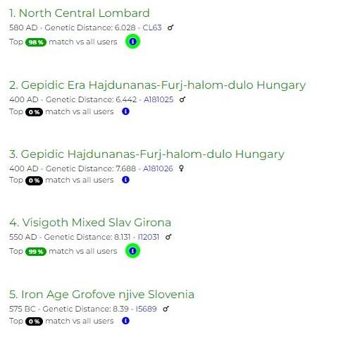 2. Early Medieval Visonta Nagycsapas North Hungary 750 AD - Genetic Distance: 7.454 - I16753 Top 0 % match vs all users (mondjuk itt nem értem a top 100% és a top 0% mit jelent)