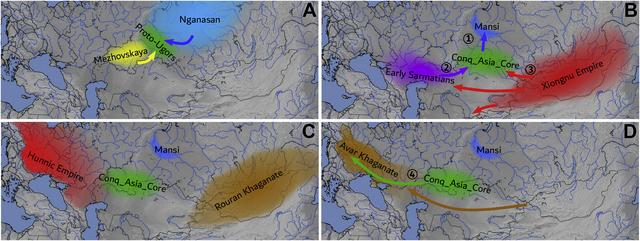 A legnagyobb felbontású genommodellek pedig arra utalnak, hogy valóban létezhetett egy „proto ugor” népesség, amely a késő bronzkori Mezhovskaya kultúra népességének és a nganaszanok őseinek keveredésével jött létre valahol az Ural és az Altáj közötti erdőssztyeppe zónában, és akik a vaskorban az ázsiai szkíták egyik csoportját alkothatták. A vaskorban a manysik és a honfoglalók ősei különváltak, és utóbbiak Kr. e. 643 – 431 között komoly mértékben keveredtek a korai szarmatákkal. Ezt Kr. u. 217–315 között egy második keveredés követte az ázsiai hunok utódaival, az európai hunok elődeivel, amelynek időpontja az európai hun kort közvetlenül megelőző időszaknak felel meg.