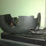 Az bakelit(műanyag) csak porvédő, hogy nem menjen tele mindennel a porlasztó melletti rész. A gond a tűzkarika. Azt a tömítést minél előbb cserélni kell, a porvédő helyett meg elég lenne egy vékonyabb O gyűrű.