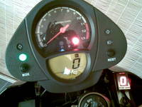 Juhééé, hazatért a gyönyörűségem! Kapott új vázat, új bukógombát és nagy örömömben vettem neki egy fokozatkijelzőt. Ez volt a jó. A rossz az, hogy sokkal jobban rezonál az egész motor :(, az előző vázzal nem éreztem ennyire a 2hengeres mivoltát.