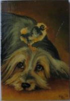 Van egy kutyás festményem, ami rétegelt lemezre készült, csak nem kellett a megrendelőnek, mert hibás volt a lemez, és ez meg is látszik a képen:
