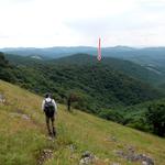 Helyette javasoltam a Vörös-kőt, az elágazás is biztos ahol a kék jelzés nagyot kanyarodik, utána domborzatilag is látszik, hogy a jelzés nélküli út a gerincen visz és maga a sziklás rét is jó piknikező hely, plusz kilátás. Aztán ugyanezt az utat kell megcélozni.