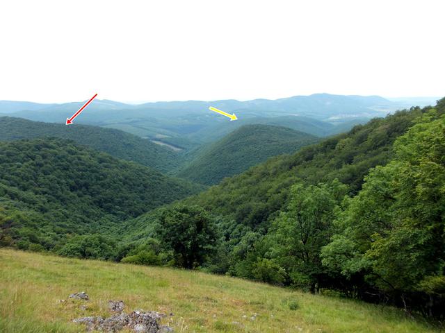 És mivel a Vörös-kő "csupán" 682m magas, így innen, közel 900 méteres magasságból nézve mindenképpen lefelé van.