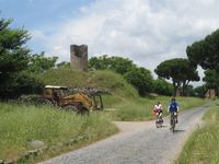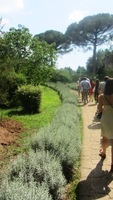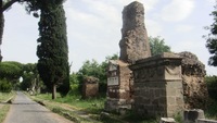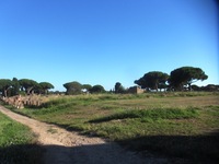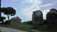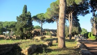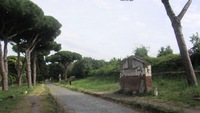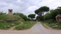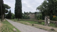 Így esett, hogy a S.Sebastiano katakomba elől egészen a Villa Quintili hátsó kapujáig kilométereket vándoroltam az utak királynőjének talán legszebb szakaszán. Útközben, az örökzöldekkel gyönyörű parkos udvarokkal szegélyezett út szélén számos temetkezési emlékhely, sírhalom, mauzóleum vagy torony látható. Egyik-másik omladozó, de látható anyaga, dísze, felirata; másokat márványtöredékeit felhasználva helyreállítottak; valamelyiket növényzet takar teljesen, némelyik a természet csiszoló munkájának köszönhetően eldeformálódva is méltóságteljesen ágaskodik a magasba. Van aki fut, mások sétálnak, csapatokban kerékpárosok tűnnek fel.