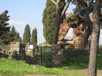 Úgy 2 órányi járással elérem a Santa Maria Novát, ahol nincs mozgás, és zárva a kapu is. Nyitvatartásra utaló táblát nem találtam, az építkezési nyomokból ítélve úgy gondolom, ha a templomot meg is nyitották, a misztikus legendáról híres lakóház feltárása és rendbehozatala még tart. A Quintili Villához még elsétálok, majd visszaindulok.
