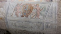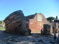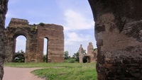 Ezt követően a 660-as busszal a Cecilia Metella végállomásig terveztem eljutni, de hosszas várakozás után a S. Sebastiano katakombáig visz csak. Látszólag nem sok séta az a két megálló, de a menetrend szerinti végállomás megállójában talált tábla szerint visszafelé is számolnom kell vele. A Capo di Bove hétfőn is nyitva van, és még belefér(ne) másodszor is körülnézni. Egy tábla fogad.