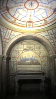 A Corsón indulunk el beszélgetve, és elvétem az irányt, útközben betérünk egy kicsike templomba, de végül megtaláljuk eredeti úti célunkat. Nekem a bazilika és az alatta található grotta is nagyon tetszett, de igazán a csak pénteken és szombaton délelőtt nyitva tartó kápolna izgat. Az évszázadokig elfelejtett freskókat Antoniazzo Romano készítette Melozzo de Forlival 1464-ben Bessarione bíboros megrendelésére. http://www.spazioliberocoop.it/cappella-bessarione A bejáratnál egy kedves hölgy ült, belépőként 4 eurót kért.