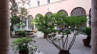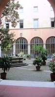A Palazzo Santi Apostoli felől található kerengő megnyugtató csendes udvaraiban jól esik körülnézni, a vízi-liliomos szökőkút és a növények feltöltő ráhangolódást biztosít a Ninfa kertre.