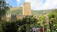 Korábbi terveim és szívem szerint a hegytetőn lévő várost és a Castello Caetanit is megnéztem volna, ahová a sziesztát kivéve óránként indítanak vezetett bemutatót 7 eurós belépő fejében, de ahogyan B. mondta, a fő attrakció és elsődleges cél a Ninfa kertje volt.