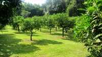 A kertben nem maradhattunk, érkezett a következő csoport, de közvetlenül a kert szomszédjában található Hortus Conclusus nevű olasz stílusú kertbe is bementünk 2 eurós plusz költségért. Ittegy kis gyümölcsöskert található kúttal, a fákon hatalmas grapefruit fityeg és a vár romjai melletti kis tóban kacsák és hattyúk siklanak.