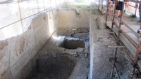 A ciszterna esetében plusz információ nem hangzott el, a kihelyezett ismertetőket olvashattuk, és kb. 20 perc alatt körbejártuk a múzeum alatt feltárt területet. Jól látszik a régi utcaszint, egy régi római út maradványa, és a víztározó helyiségek.