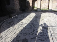 Az Essedrához induló csoportban is csak 8-an vagyunk, a kb. 20 perces bemutatón olaszul hangzik el az információ, több színes freskó- és mozaik maradvány látható.