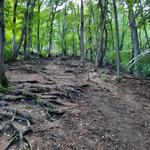 Amint a pulzus határra csipogott a Polar, azonnal csökkentettem a tempót, a Garmin 8 percenkénti jelzésre pedig ittam a zsákból. A párás meleg nem zavart, a botok segítségével tempósan haladtam az időnként dagonyás ösvény részeken is, ahol egyébként csúszkálni lehetett volna. Élveztem a tájat a jó időt és a szinte folyamatos előzést. Egy helyen még fénykép miatti ki kitérőt is tettem.