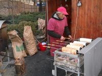 Kolbász volt több helyen is,egyszer a disznóvágásos asztaloknál,nyersen,sütve,meg még a forraltboros társaságok egy részénél is,másik helyen egy kb 2méter átmérőjű kerek nagy serpenyőben sütötték a kolbászt hurkával és hajába krumplival.Neked való a hely!:-)