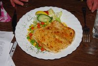 Brokkolikrémleves, roston harcsa márbánysajtos salátával. És a korona az ebéden az volt, hogy a főnöknek van valami vendége, ezért az ő asztaluknak céges ebédet fizetett... (egy másik asztalnál ülő pár kollegának meg nem) És mivel egy kollegát bíztam meg, hogy hozza fel a céghez az ebédemet, így ingyen ebéd volt házhozszállítással :)