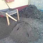 A nagyon hitvány részekre kevertem kvarhomok-komposztált trágya-általános virágföldet, majd besöpörtem.