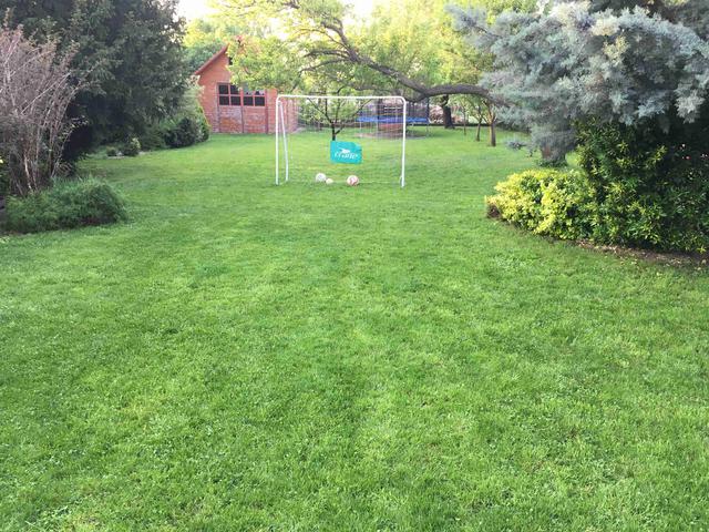 Semmi rendkívüli, csak a fotón úgy láttam, hogy ha gyepszőnyeg, akkor elbírna egy késes szellőztetést a sok barnás szál miatt akkor is, ha nincs még egy éves a telepítés.