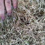 Annyit tettem még, hogy a nagy eső után nagyon alaposan végigvasvilláztam a problémás területeket. Sajnos sok helyen kb. 5 cm-es lehet a gyökérzete a fűnek. Ezeken a területeken szinte alig nő, és a vasvillás mozgatásnál könnyen széttépődik. Ahol szép a gyep, ott ez egyáltalán nem így működik. Az érzésem az, hogy fulladozik a gyep, ráadásul még nem gyökeresedett vissza rendesen ezeken a foltokon. Most megnézem, hogy a vasvillázás és az Amalgerol együtt segít e rajta, utána taktikát váltok.